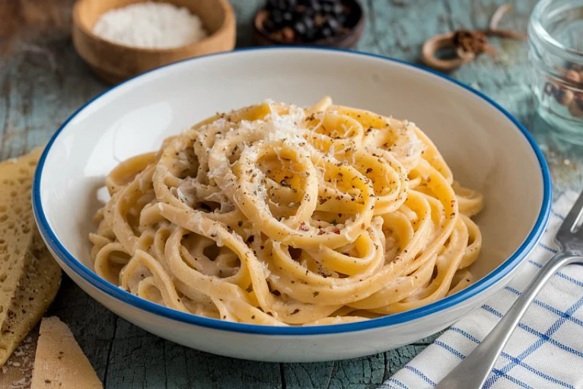 „Cacio e Pepe“ е класично италијанско јадење од Рим кое ја слави едноставноста. Потребни ви се само тестенини, сирење пекорино, маслиново масло и свежо мелен црн бибер кои се спојуваат во кремаст сос полн со вкус.
