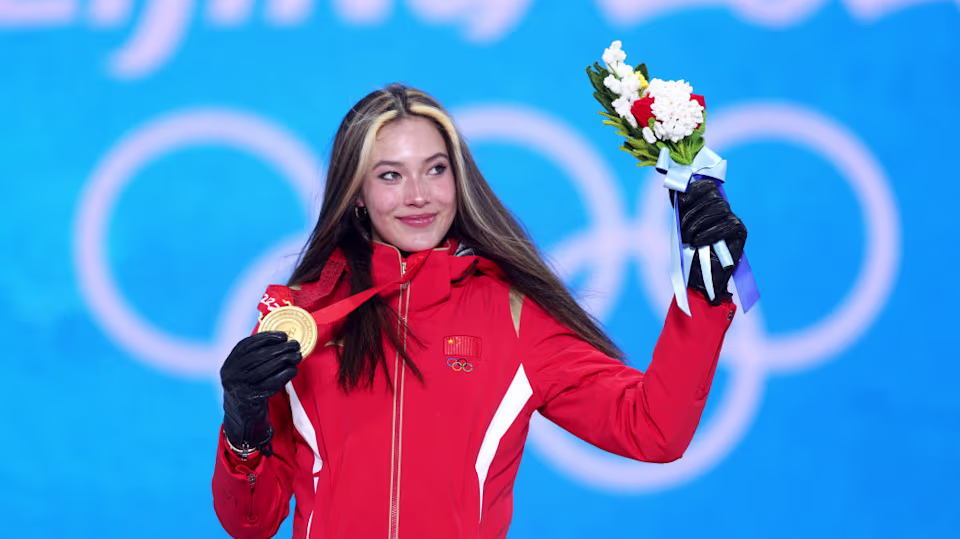 The American Eileen Gu, competing under the Chinese flag 🇨🇳, wins another gold!