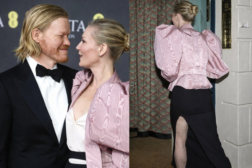 Данст носела впечатлива розово сако со нагласени, волуменозни ракави, преку бела маица и црно здолниште што ѝ се скинало.