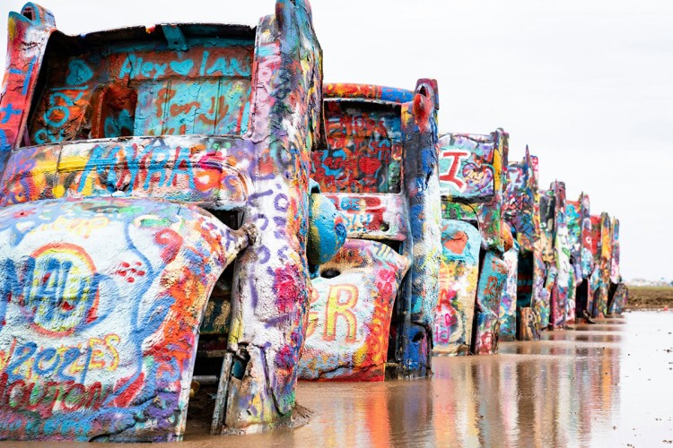 Јавната уметничка инсталација „Cadillac Ranch“ во Тексас веројатно е една од најчудните уметнички атракции во Америка.