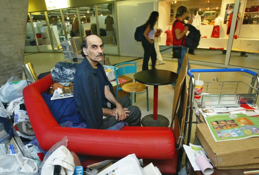 Од 1988 до 2006 година, иранскиот бегалец живеел во Терминал 1 на „Charles de Gaulle Airport“ во Париз. Негов дом бил една црвена пластична клупа, откако ги изгубил своите патни документи и се нашол во правна „ничија земја“ – без можност да влезе во Франција, но и без можност да отпатува во друга држава.