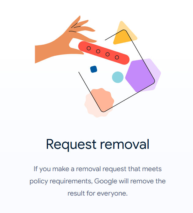 Ако сакате да отстраните некој резултат, потребно е да го изберете и да кликнете на опцијата „Request removal“. „Google“ ќе го прегледа барањето и ќе ве извести за исходот преку е-пошта. Треба да се има предвид дека врските до страници од јавен интерес, како владини портали или новинарски сајтови, можеби нема да можат да бидат отстранети.