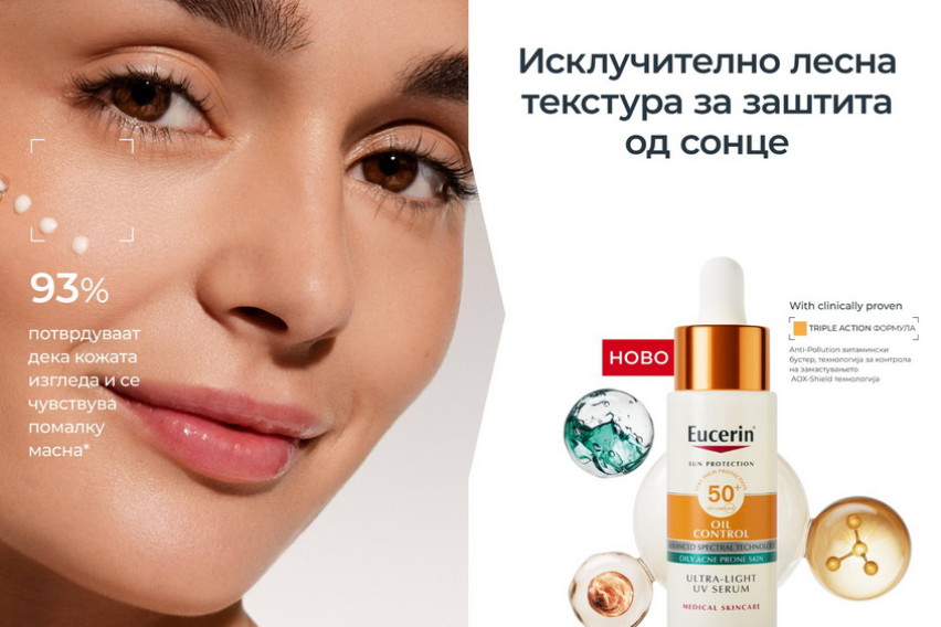 Eucerin Sun Face Oil Control Daily UV Serum SPF 50+ е достапен во сите поголеми аптеки низ Македонија. За најдобри резултати, комбинирајте го со Dermopure Clinical гелот за миење лице и Triple Action серумот, трио што ќе ја одржува вашата кожа чиста, балансирана и заштитена во текот на целата година.