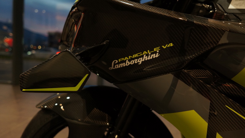 Panigale Lamborghini е базиран на платформата Ducati Panigale V4 и го придвижува моќниот 1103 cc V4 Desmosedici Stradale мотор кој развива околу 214 коњски сили. Благодарение на карбонските елементи, титаниумскиот издувен систем и специјалните лесни компоненти, тежината е значително намалена, што овозможува перформанси на ниво на тркачки мотоцикл.