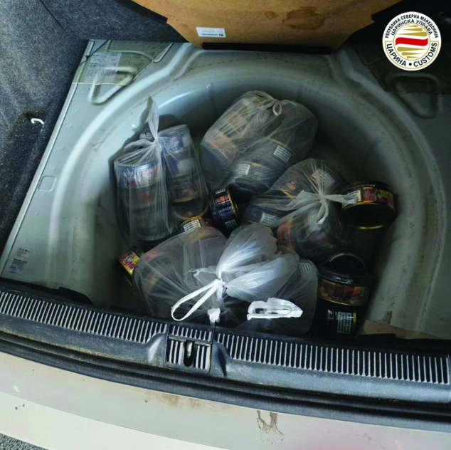 Сторителот Ф.Б. државјанин на Македонија набавил вкупно 480 пакувања тутун за наргиле од по 250 грама од лице од Приштина и истите ги сокрил во багажникот, при што дел ги сместил во просторот наменет за резервна гума, а останатите ги покрил со прекривка. При влез во државата, на прашање од страна на царинските службеници дали има нешто за пријавување, лицето изјавило дека нема ништо. Поради сомневање во дадената изјава, службениците извршиле детална контрола, при што биле пронајдени непријавените тутунски производи.