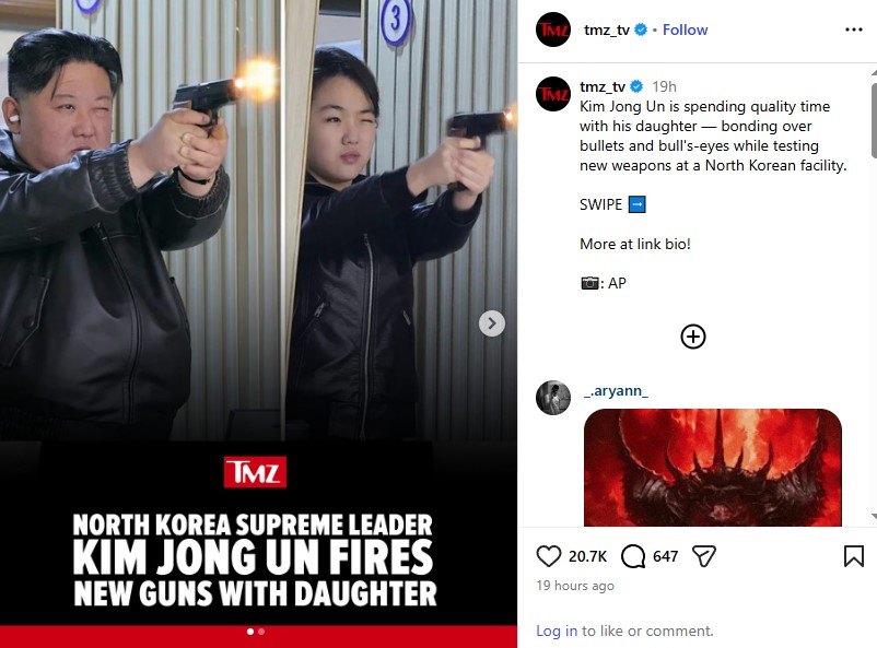 На новите заеднички фотографии, таа може да се види со нејзиниот татко, Ким Џонг Ун, на стрелиште, облечени во речиси идентични кожени јакни. Таа многу почесто се појавува во јавноста во споредба со нејзината мајка, која била претставена како сопруга на лидерот на Северна Кореја во 2012 година.