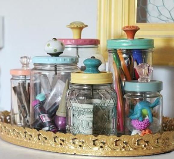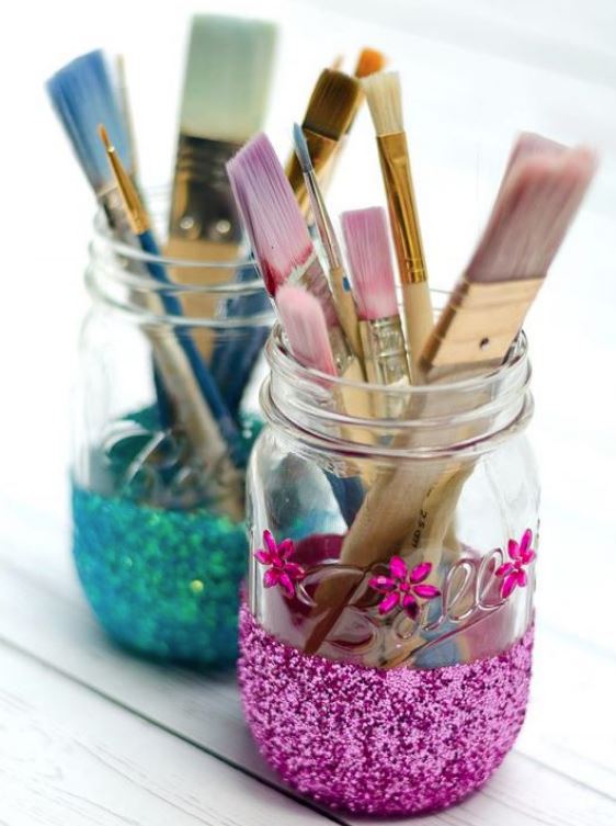 Во поголемите стаклени тегли можете да ги организирате моливите, четките за шминка или дури алатките за креативни и уметнички проекти. Ако сакате да додадете личен печат, украсете ги теглите со ленти или боја.