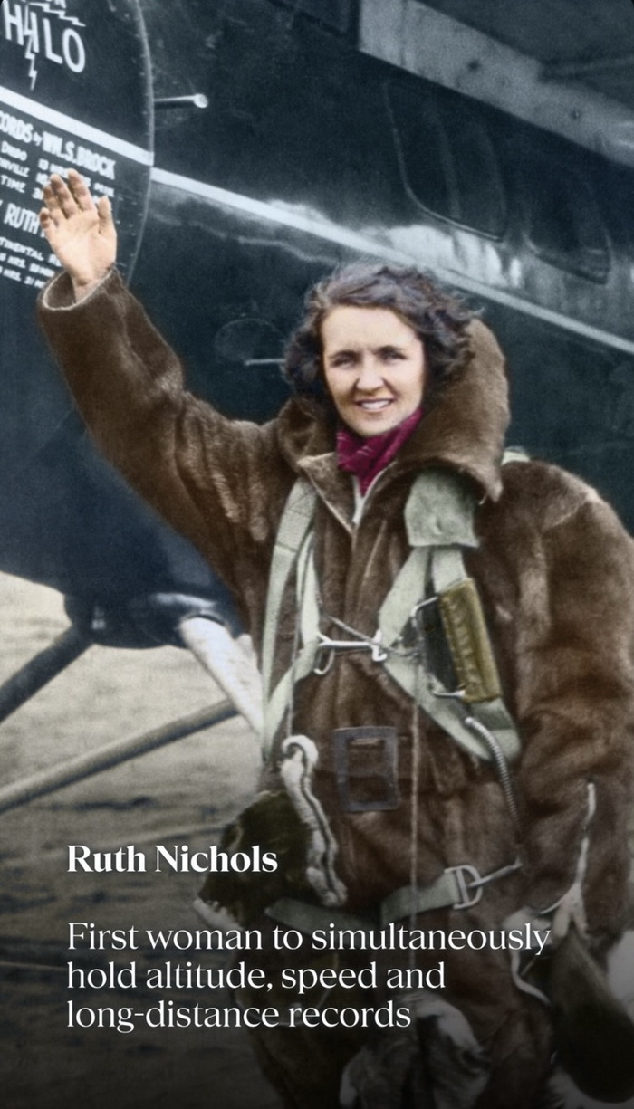 А за некои жени рекордите не се цел, туку навика. Рут Николс во еден период истовремено ги држеше рекордите за височина, брзина и далечина на лет, редок подвиг во историјата на авијацијата.