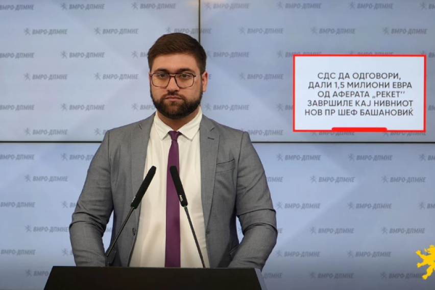 СДС да одговори дали еден и пол милион евра од аферата „Рекет“ завршиле кај нивниот нов ПР шеф Башановиќ, вели Валентин Манасиевски, член на ЦК на ВМРО-ДПМНЕ.