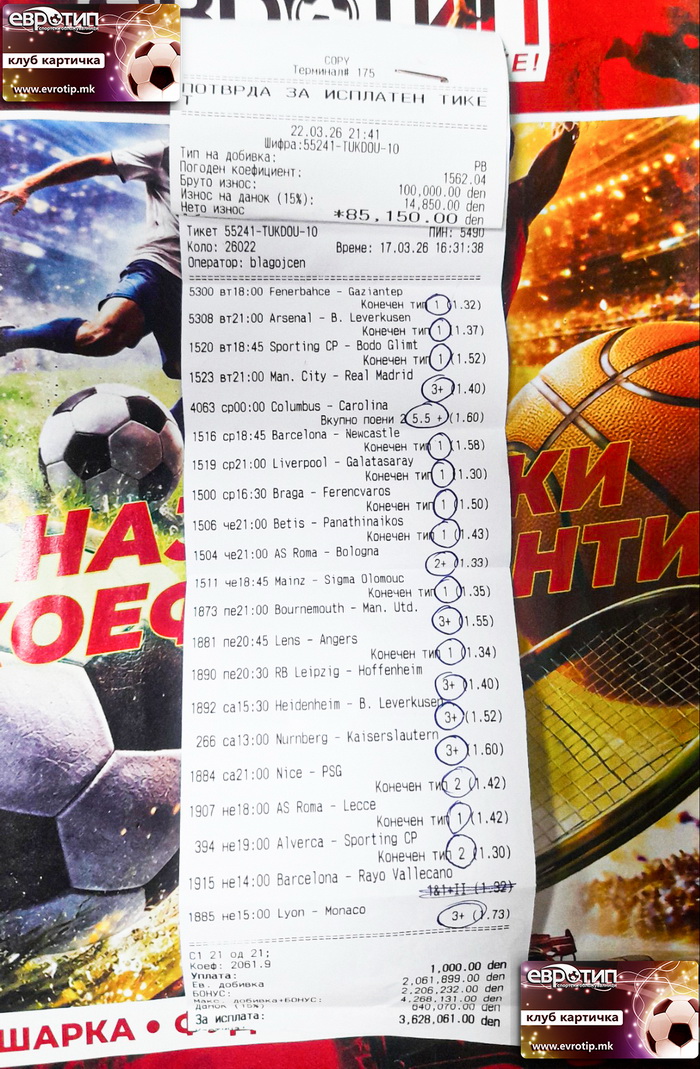 Со уплата од 1.000 денари, играчот си заминува со 100.000 денари добивка. Да, и покрај еден промашен натпревар. Тоа не е случајност – тоа е систем што работи во корист на играчот.