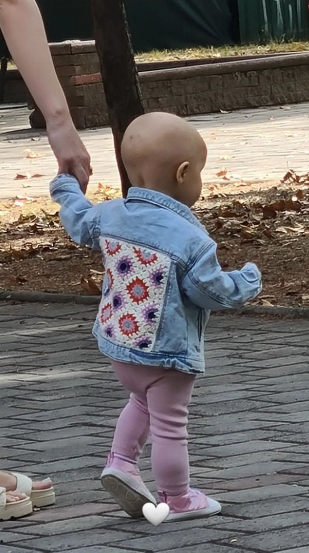 „Првите симптоми ги имаше тогаш, на 8 месеци. Бевме на регуларен преглед кај матичната, како што ги прегледуваат бебињата... Ја легна под силно светло и јас гледам и викам: „Еј, што ѝ е оваа црвена точка?“. А, таа вика: „Се гребнала нешто...“.