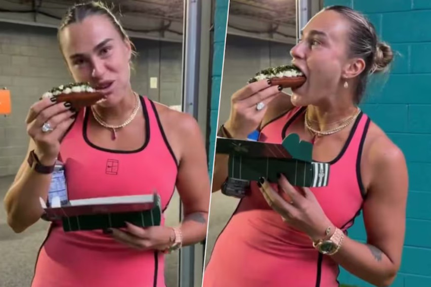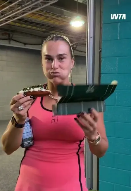 По натпреварот, член на медиумскиот тим на ВТА ѝ пришол на тенисерката со овој необичен оброк за да снимат содржина за социјалните мрежи, а Сабаленка не го криела своето воодушевување.