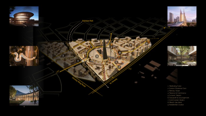 Златниот округ ќе биде центар за знаење, здравствена заштита и иновации, а се планира да вклучува болници и други медицински установи, технолошки центри и образовни институции што можат да сместат 40.000 студенти.