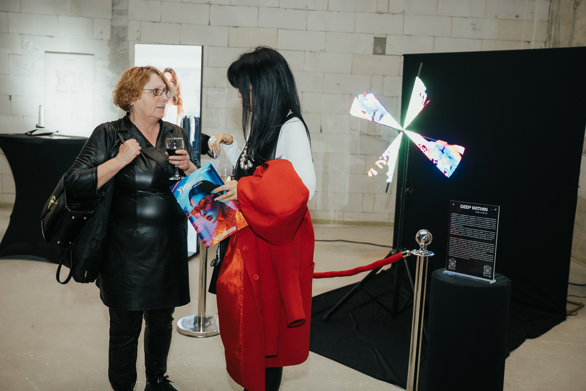 Вториот дел од вечерта го промени медиумот — од материјално кон дигитално, од форма кон процес. Изложбата „3D & AI во модата“, финансирана од Европската Унија и поддржана од Green Land Group, како дел од проектот DigiFashTech, ја постави модата во контекст во кој 3D дизајнот и вештачката интелигенција повеќе не се експеримент, туку нова работна реалност.