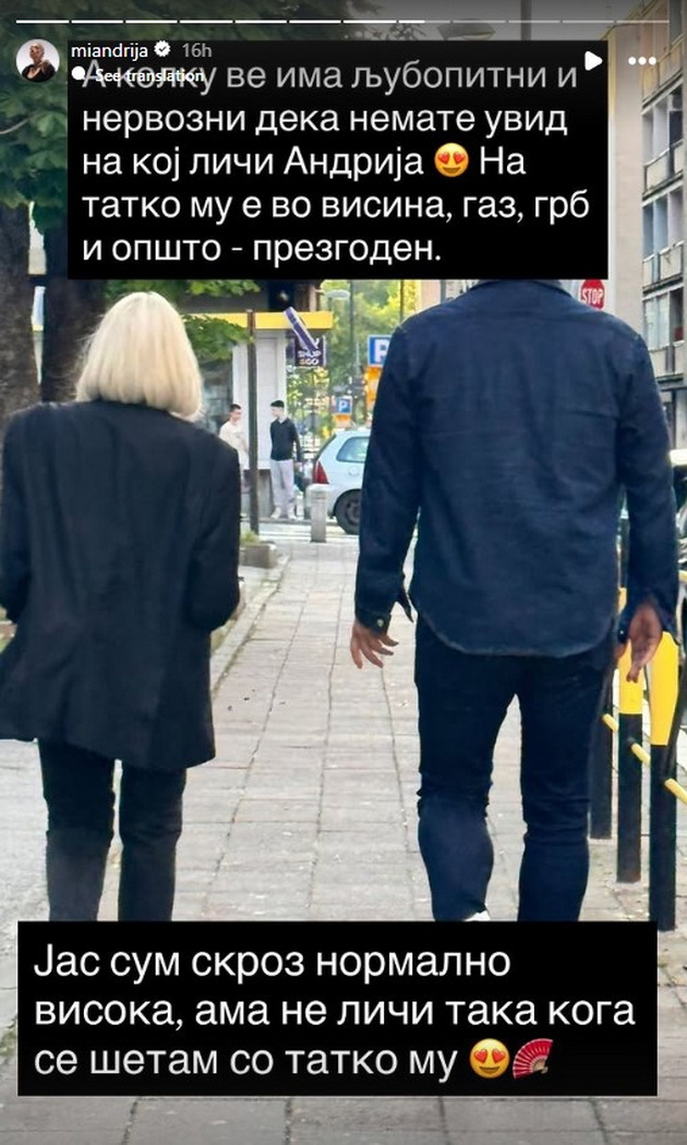 Како одговор на ваквите прашања, таа објави фотографија на која се гледа таткото на Андрија, но само одзади, без да му се открива лицето. Притоа напиша дека има многу „љубопитни и нервозни луѓе“ кои сакаат да знаат на кого личи Андрија, додавајќи дека детето ја наследило висината и градбата од татко му, кого го опиша како многу згоден.