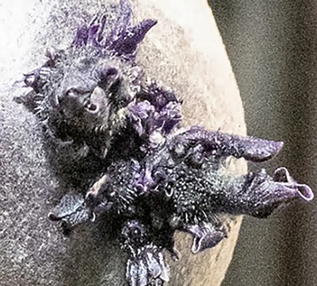 Притоа нагласил: „Ова е ран виолетов компир со малку велкро на куката за прицврстување во мојот импровизиран терариум со светло за одгледување“.