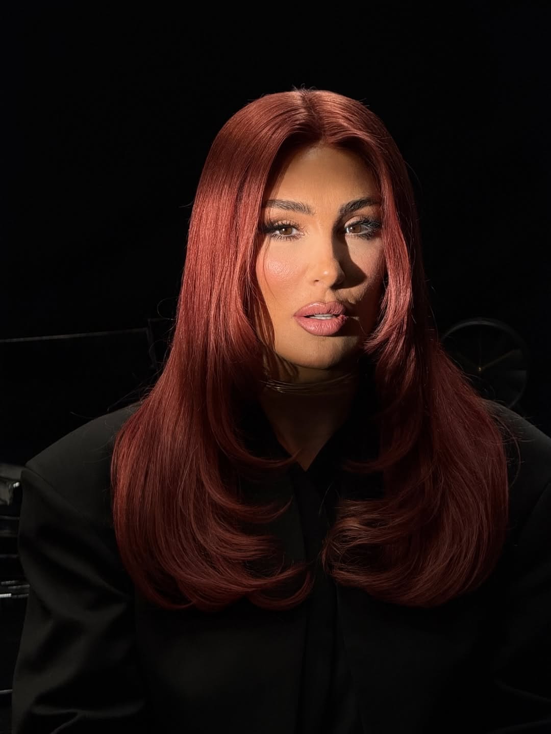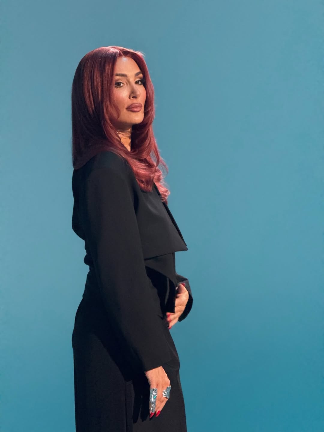 Пејачката позирала во добро расположение, а за оваа пригода ја променила и бојата на косата во црвена нијанса. Исто така, таа избрала суптилна шминка што ги нагласила нејзините очи.