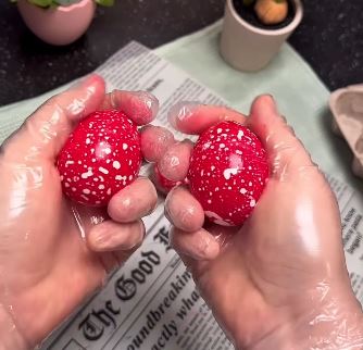 Нејзиното видео прикажува метод за бојадисување јајца што дава спектакуларен мермерен ефект, а за него се потребни само три состојки што повеќето веќе ги имаат во својата кујна:
