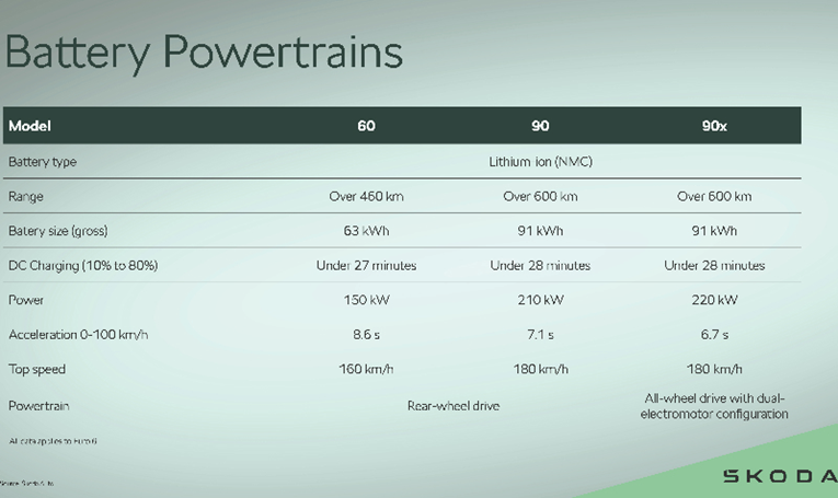 Четвртиот електричен модел во понудата е позициониран над моделите „Enyaq“, „Elroq“ и најавениот „Epiq“. На купувачите ќе им биде понуден во верзии со пет и седум седишта, со акцент на голем багажен простор.
