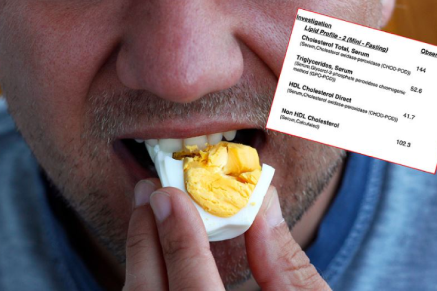 Иако лекарите повеќепати се обиделе да ја побијат тезата дека јајцата го зголемуваат нивото на холестерол, многумина и натаму веруваат во овој мит. Д-р Дип Дута, ендокринолог, во обемна објава на социјалната мрежа „X“ откри дека веќе повеќе од 18 месеци јаде по четири јајца дневно, односно 28 неделно. Нагласи дека тоа не влијаело негативно врз неговиот липиден статус. Нема покачен холестерол ниту триглицериди.