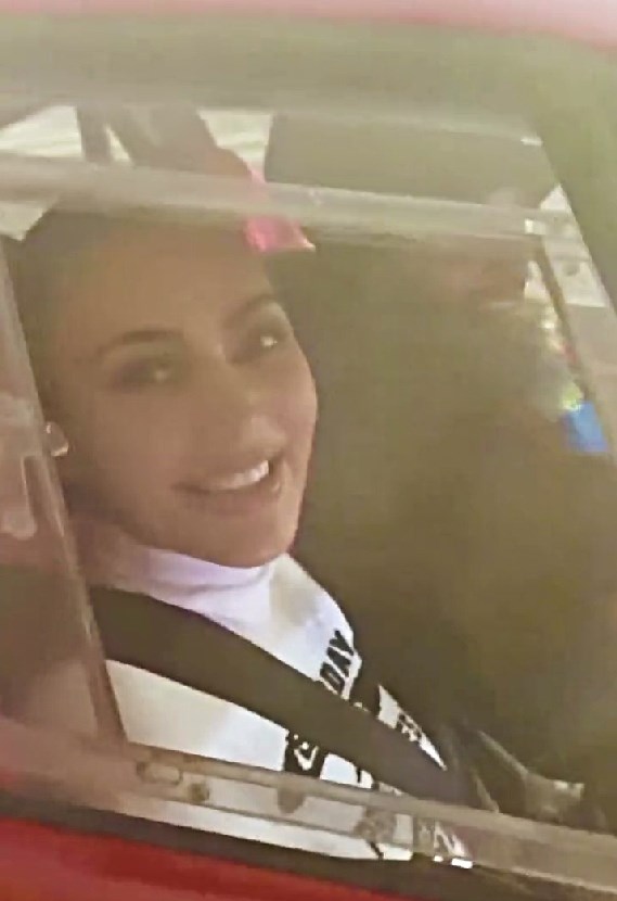На самиот крај од снимката, камерата се доближува до Кардашијан која седела на совозачкото место. Облечена во бела ролка, мајката на четири деца по возбудливото возење кратко рекла: „Ова е лудо“.