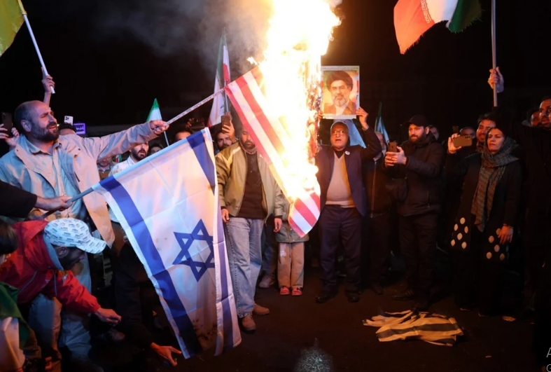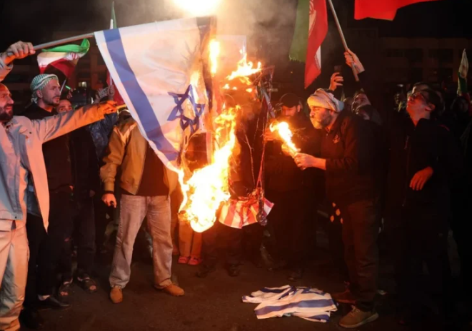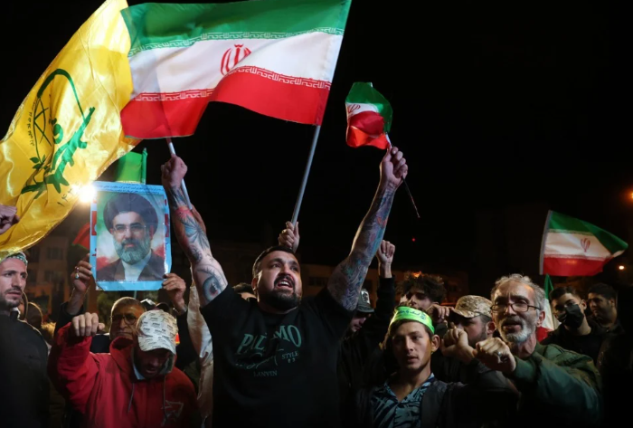 Снимките од местото на настанот покажаа запалени американски и израелски знамиња, вообичаена глетка на прорежимските митинзи во Иран. Други мавтаа со ирански знамиња и носеа слики од врховниот лидер на Иран Моџтаба Хамнеи и неговиот убиен татко, поранешниот лидер ајатолах Али Хамнеи.