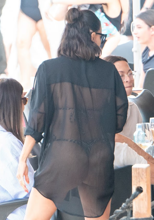 Ѕвездата од серијата „Очајни домаќинки“ се појави во предизвикувачко бикини со лесна, речиси проѕирна наметка, нагласувајќи ја нејзината фигура. Двојката не ги криеше своите емоции - разменуваа галење и бакнежи, додека остатокот од денот го поминаа релаксирајќи се на сонце, пред да се упатат кон блискиот бар на плажа на ручек.