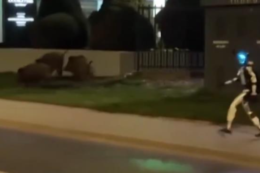 Најпознатиот робот што брка диви свињи! Комични сцени на улиците на главниот град на европска држава!