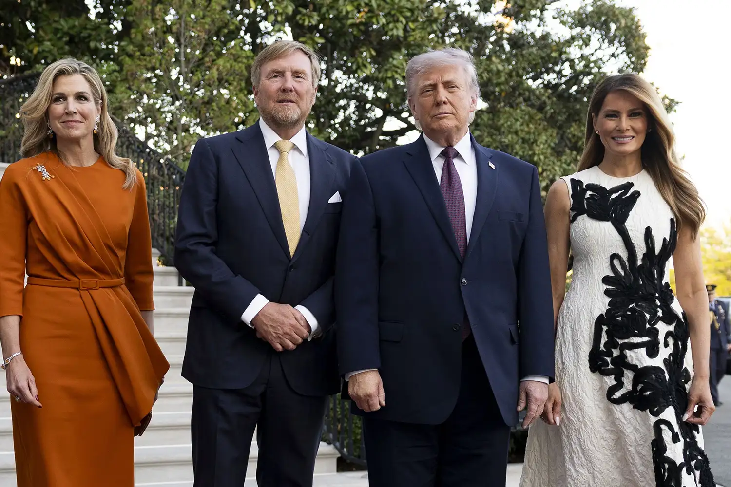 Заедничкото појавување на двете дами на црвениот килим беше сè што ваквите средби и треба да бидат – прецизно режиран спој на политика, протокол и мода. Покрај нив беше и холандскиот крал Вилем-Александер, со што дополнително беше нагласена формалноста на настанот.