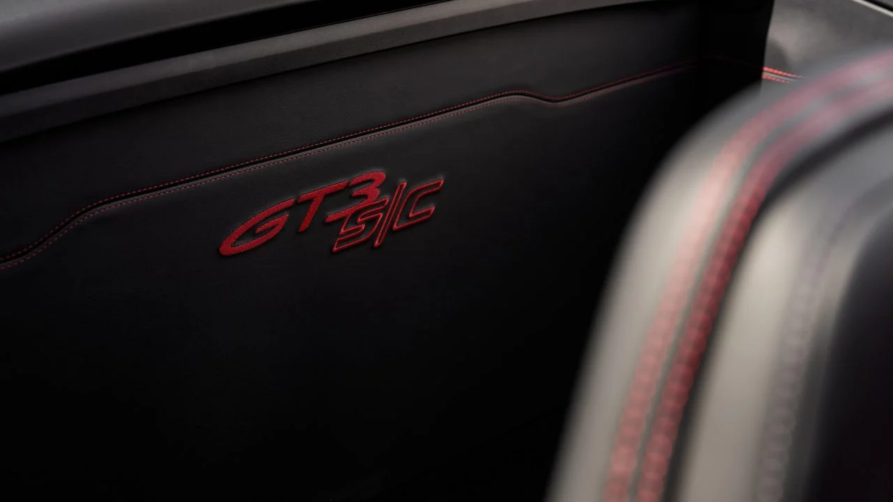 Внатрешноста има лесни теписи и лесни панели на вратите со рачки од јаглеродни влакна – дополнителни дизајнерски карактеристики пренесени од 911 S/T. 911 GT3 S/C е изграден како двосед, со стандардно прилагодливи Sports Seats Plus со четири насоки. Лесни спортски седишта со преклопливи потпирачи и обвивки од карбонски влакна се опционално достапни за 911 GT3 S/C. Преклопливите „Bucket“ седишта се опремени со интегрирани воздушни перничиња, електрично прилагодување на висината и рачно надолжно прилагодување. Може да се нарача и тристепено греење на седиштата како опција. Внатрешноста е обложена со црна кожа како стандард – вклучувајќи ги сончевите визири и деталите на А-столбот. Логото на GT3 S/C е везено во центарот на задниот преграден раб. Централните панели на седиштата се завршени со перфорирана кожа. Како и кај 911 S/T, воланот исто така е обложен со перфорирана кожа.