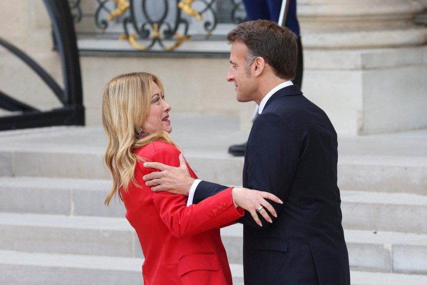 Пред Елисејската палата во Париз, францускиот претседател Емануел Макрон ја пречека италијанската премиерка Џорџа Мелони, која престојуваше во градот поради меѓународна конференција за безбедноста на пловидбата низ Ормускиот теснец.