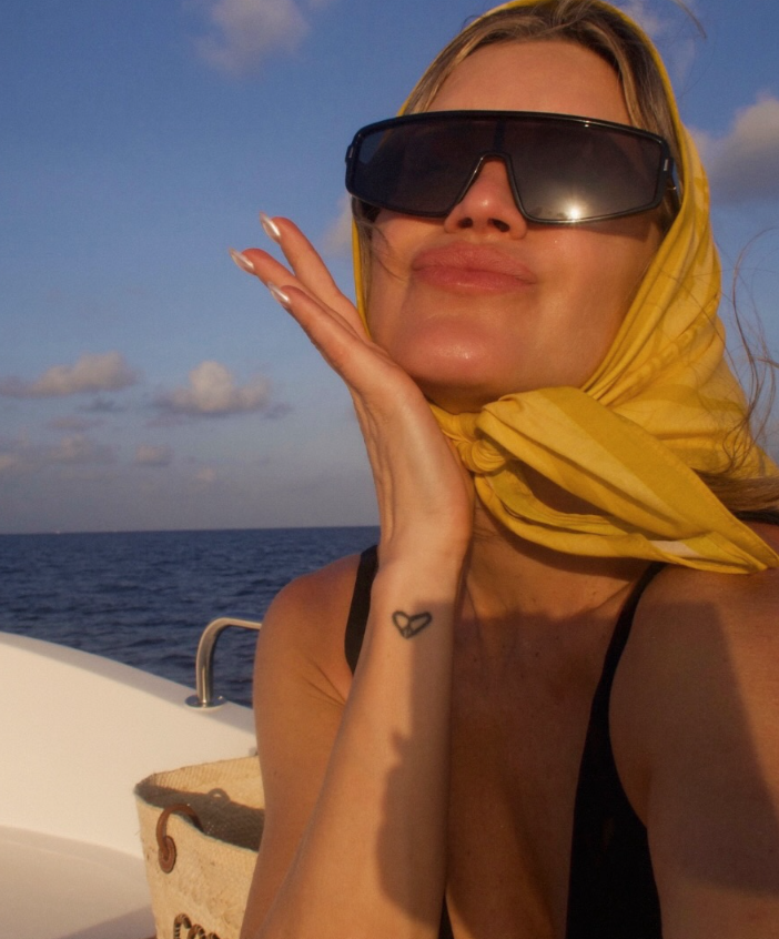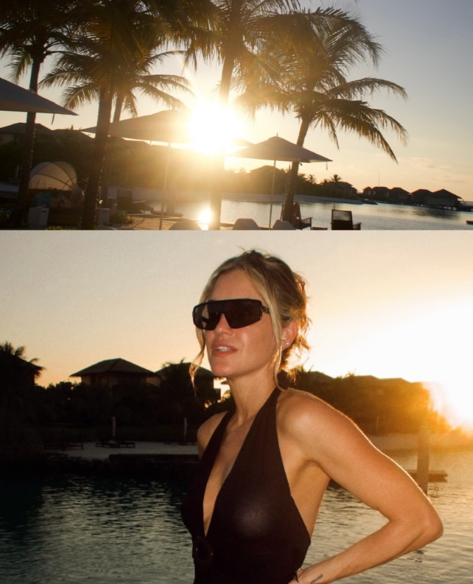 Малото розово бикини беше само вовед во серија фотографии што ги објави, па имавме можност да ја видиме и во црно додека лежи на песок во провокативна поза, а покажа и како изгледа ноќен излез на Малдивите.