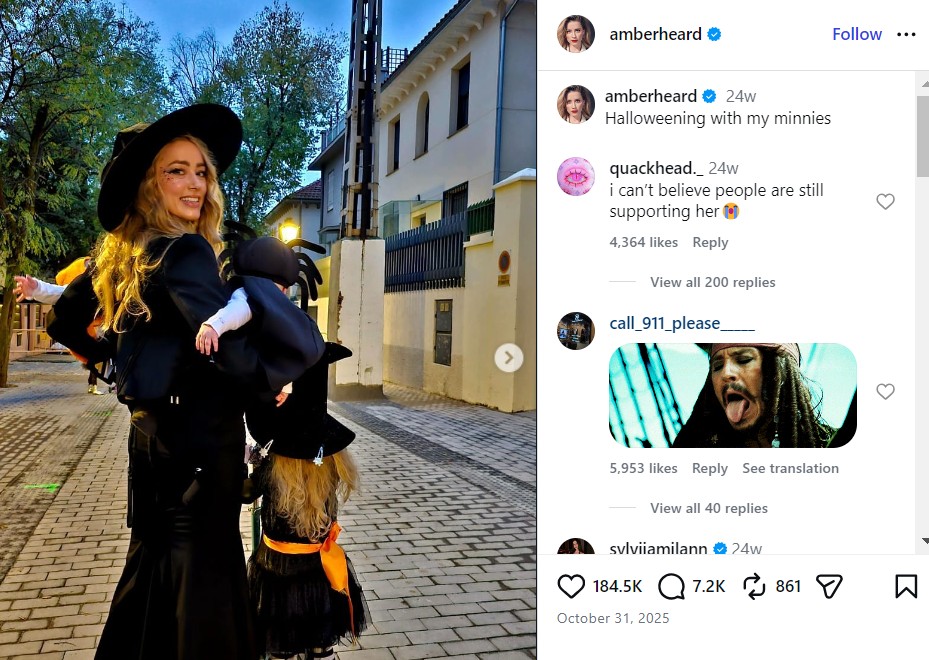 „Денот на мајката 2025 ќе биде ден што никогаш нема да го заборавам. Оваа година сум неизмерно возбудена што го славам заокружувањето на семејството што со години се обидував да го изградам. Денес официјално ја споделувам веста дека пречекав близнаци во семејството Херд. Мојата ќерка Агнес и син ми Оушн ми ги исполнуваат рацете и срцето. Кога пред четири години ја добив мојата прва ќерка Уна, светот засекогаш ми се промени. Мислев дека не можам да бидам посреќна. Сега сум трипати посреќна“, напишала тогаш актерката.