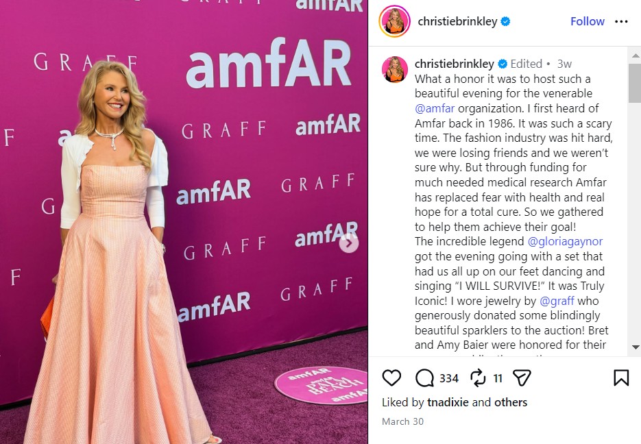 Кристи Бринкли во вторникот вечерта во Њујорк привлекла внимание со својот многу младешки изглед. Манекенката, која има 72 години, позирала на црвениот килим на добротворна гала-вечера одржана во познатиот ресторан „Cipriani“ на 42. улица, а нејзиниот изглед предизвикал бројни коментари.