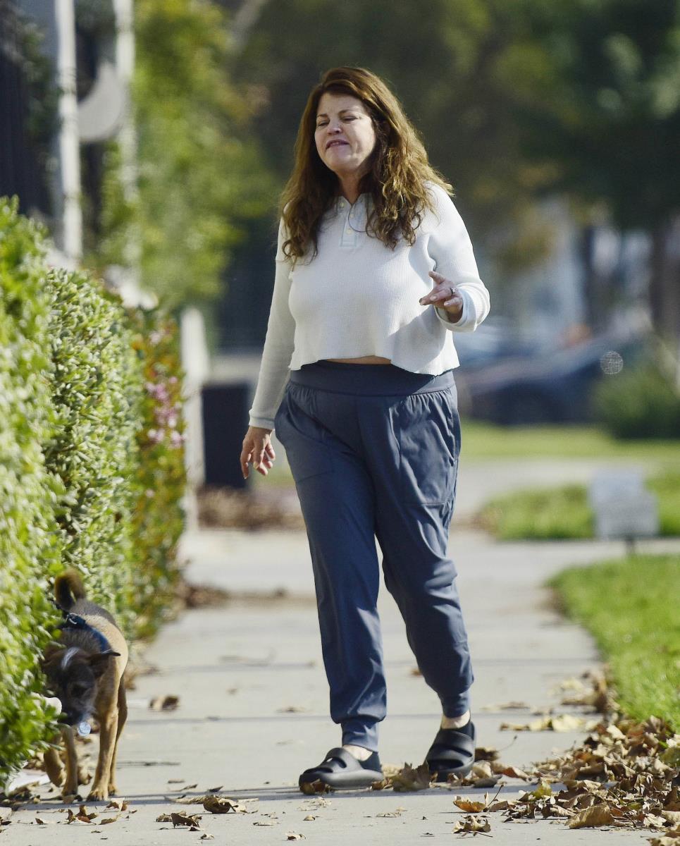 Јасмин Блит ја играше прекрасната Каролина во популарната серија од 90-тите „Чувари на плажата“, а денес е далеку од заводливата заводничка која ги освои насловните страници во својот препознатлив црвен костим за капење. 56-годишната ѕвезда неодамна се прошета со својот сопруг Пол Керит и нивното куче, облечена во маица со долги ракави и долен дел од тренерка.